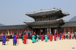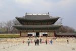 Glowny palac dynastii Joseon oryginalnie zbudowany w 1395r, najwiekszy z seulskich palacy. Obecne budynki zostaly odtworzone i odrestaurowane w XIX i XX wieku, po tym jak zostaly wczesniej zniszczone przez pozary, opuszczone przez kilkaset lat, a na koncu czesciowo rozebrane podczas okupacji Korei przez Japonie na poczatku XX wieku. Caly kompleks jest gigantyczny i warto poswiecic co najmniej kilka godzin na spacer po parku i by obejrzec wszystkie budynki. Zwiedzanie z przewodnikiem po angielsku: 11:00, 13:00 i 15:30. Zmiana warty co godzine od 11:00 do 15:00. Wstep 3000 KRW (£1.84, 9.80zl). W niedziele od 12.00 do 13.00 byl jakis pokaz lokalnych tradycji, zalapalam sie na koncowke.