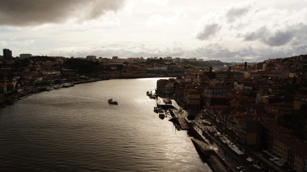 Zachód słońca nad rzeką Duero, Porto, Portugalia.