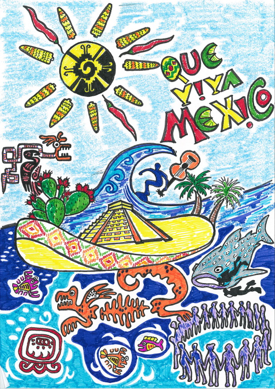 Que viva Mexico !!! - Niech żyje Meksyk to tytuł kultowego filmu stanowiący portret kultury Meksykańskiej od czasów z przed rekonkwisty do meksykańskiej rewolucji. Kolaż symboli ma stanowić integralną kompilację wyobrażeń na temat tej niezwykle bogatej cywilizacji od czasów Majów po czasy dzisiejsze. Meksyk to dryfujący po wodach zatoki Meksykańskiej kapelusz sombrero, utrzymywany na powierzchni wody, zgodnie z podaniami Majów, przez ogromną jaszczurkę. W sercu lądu zbudowana jest piramida Quetzalcóatl. Na skraju kapelusza rośnie krzew opuncji z orłem dzierżącym w dziobie węża - to odwołanie do meksykańskiej flagi i legendy o powstaniu pierwszego państwa. W toni ciepłej i krystalicznej wody można podziwiać bogactwo tutejszej fauny i flory, które od lat fascynują płetwonurków z całego świata. Dodatkową atrakcją u brzegów Jukatanu jest ewenement na skale światową – Podwodne Muzeum Cancun obejmujące 400 rzeźb przedstawiających postaci ludzkie w skali 1:1. Plaże, palmy, idealne warunki